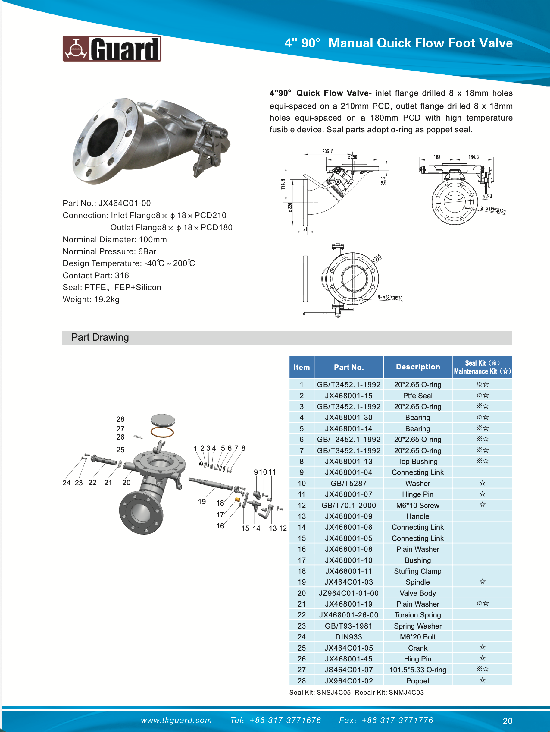Válvula de pie de giro de 4″ y 45°