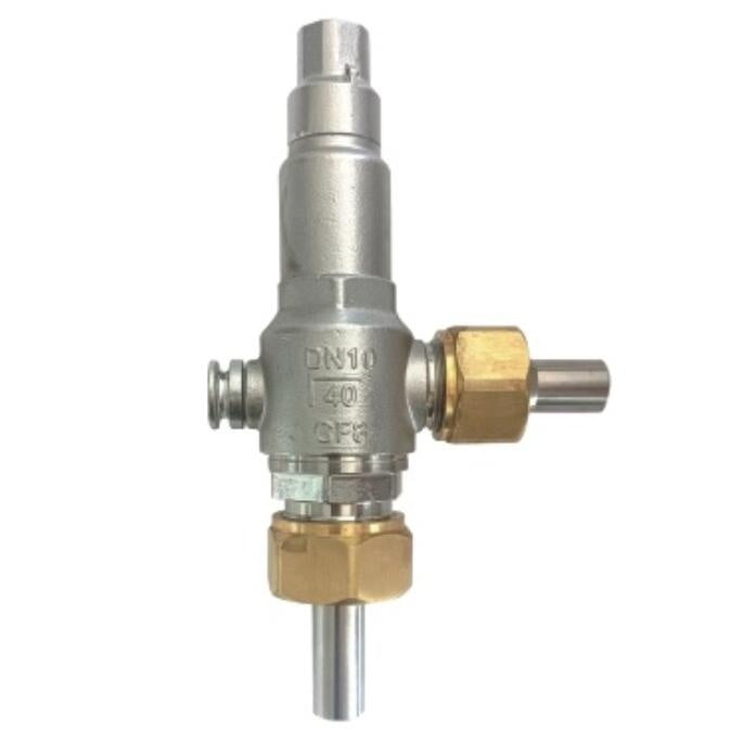 Válvula de seguridad. Entrada y salida preparadas para soldar. Presión nominal de 1,6 MPa con junta de PCTFE.