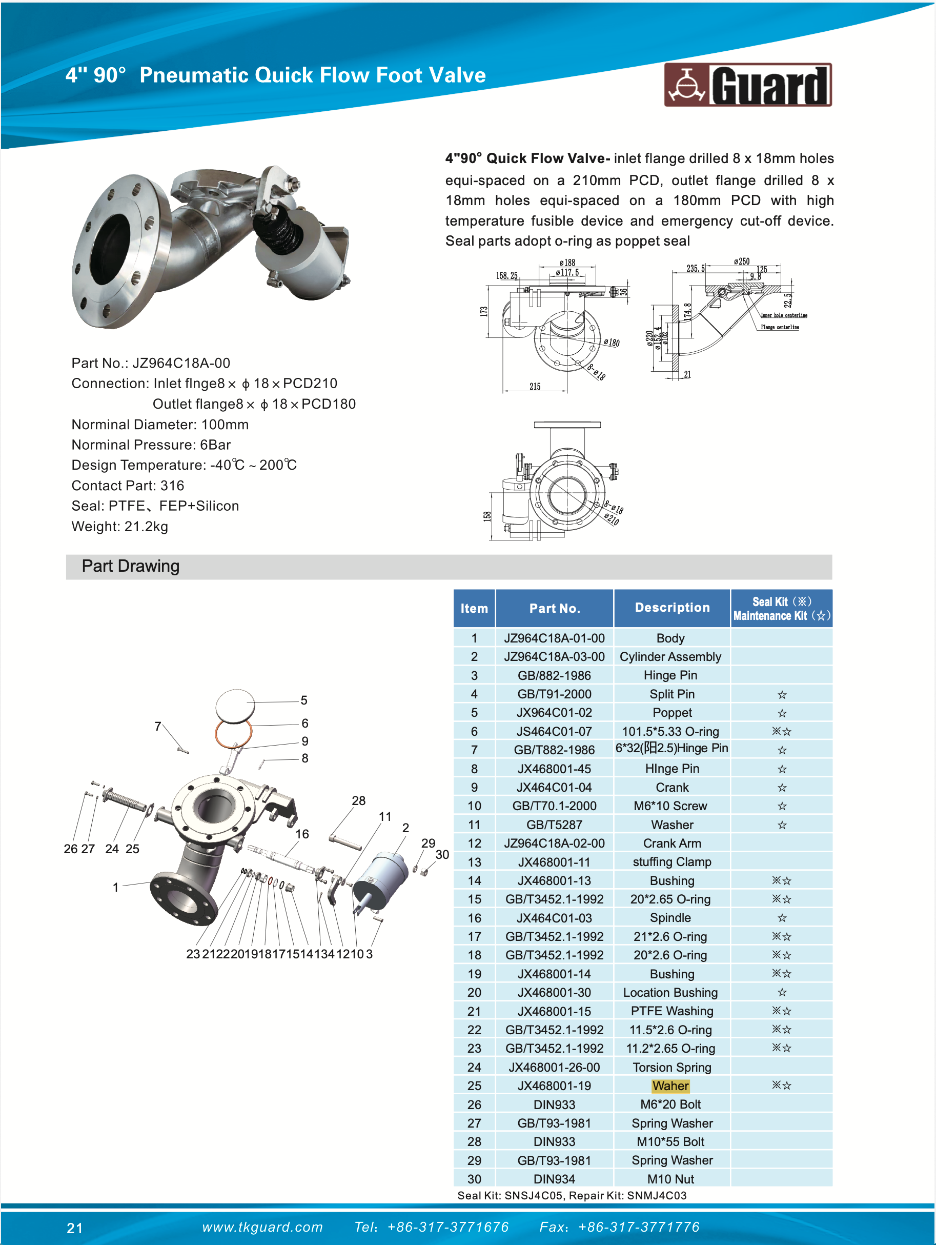 Schnellfluss-4"-90°-Pneumatik-Fußventil