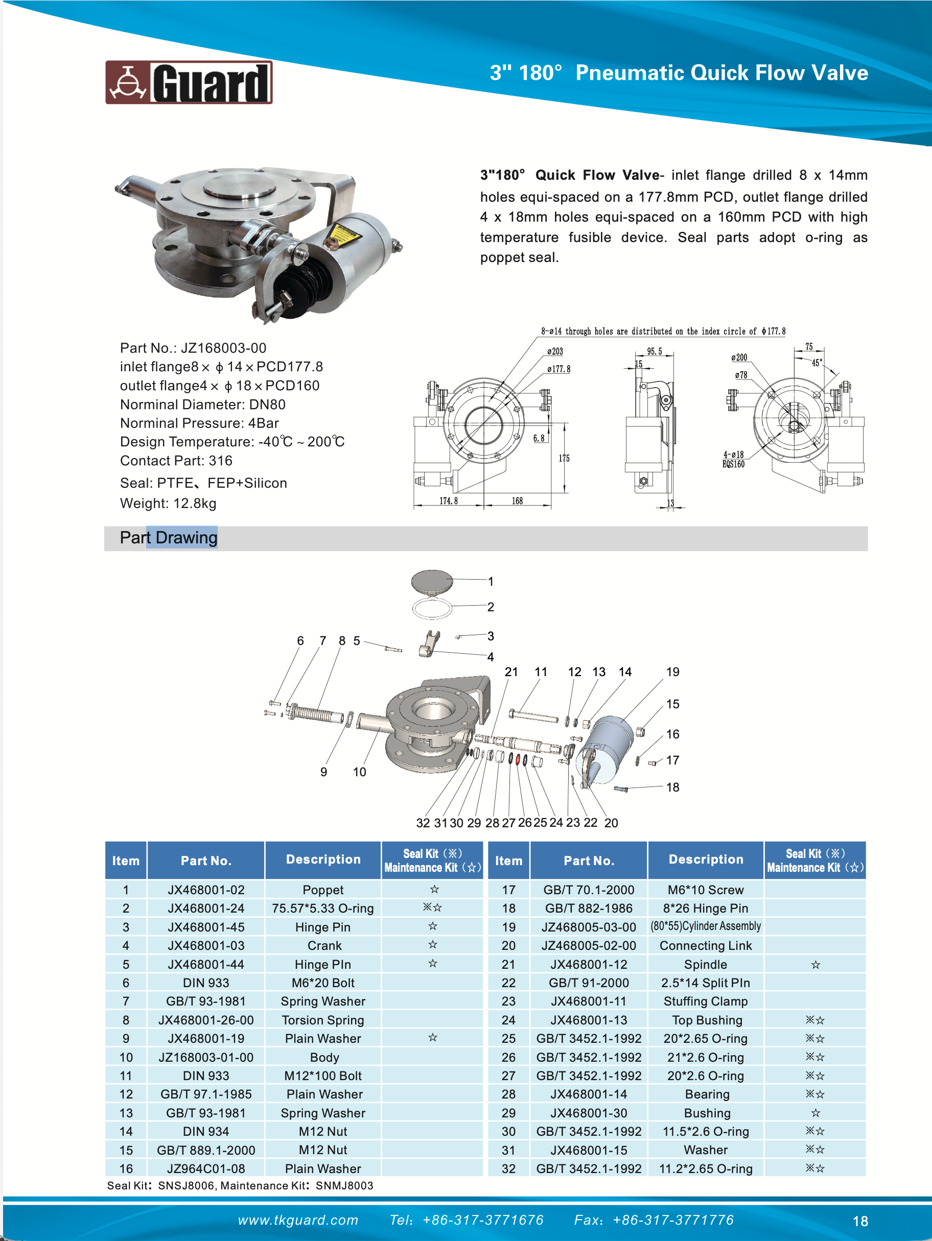 3" DN80 180 Degree Quickflow Foot Valve, Pneumatic Control
