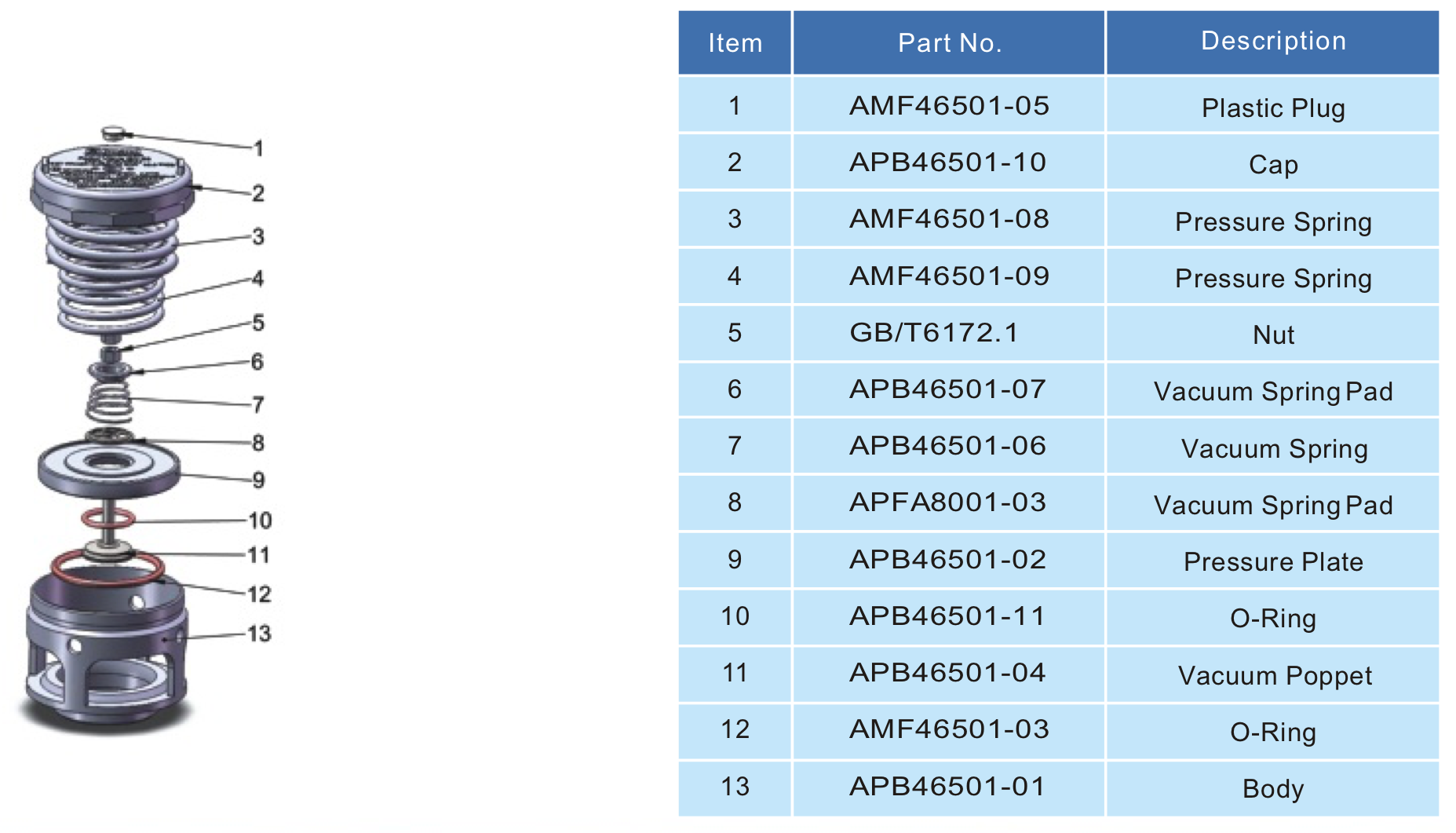 Joint sous vide, FEP / SILICIUM pour soupape de sureté