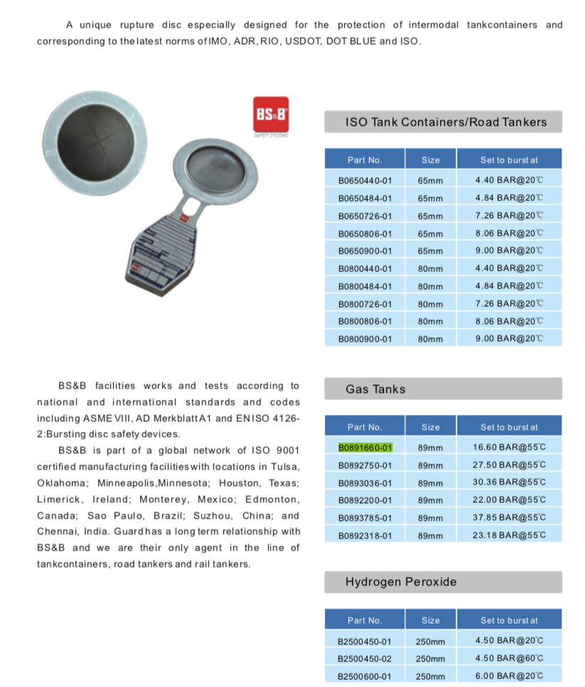 3-1/2" Rupture Disc Gas Tank - 89mm, 16.60 barg @55°C